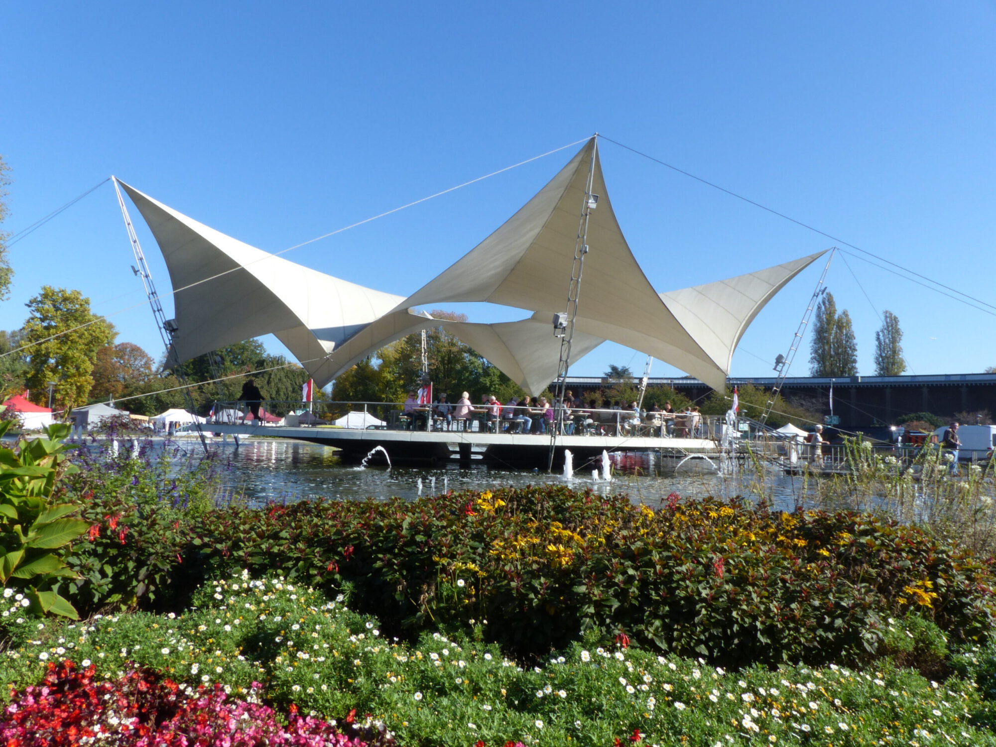 Zum Abschluss des Tages, kann man es sich unter den riesigen Schirmen des Tanzbrunnens gemütlich mit einem Aperol Spritz, Rose oder einem Heißgetränk wie einem „Hot Spritz“ oder einer „heißen Holler“ vom „Weinkontor Baustian“ bequem machen.